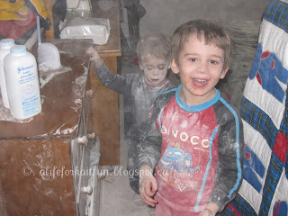 My boys were having some fun with powder the other day. I just had to post this. Thought everyone could use a good laugh! I didn't scold them as there were two adults in the house and they were not being watched. The picture quality is perfect, by the way. There really was powder from floor to ceiling and wall to wall!!